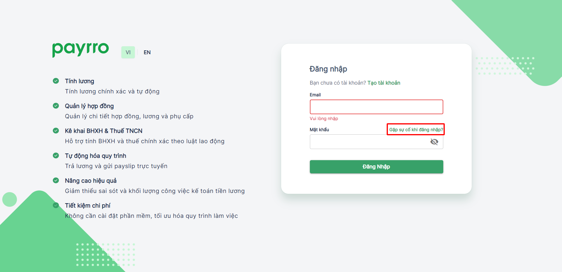 Bước 1: Truy cập vào trang web: Dashboard.payrro.com